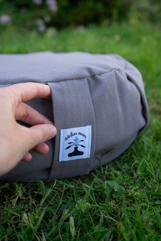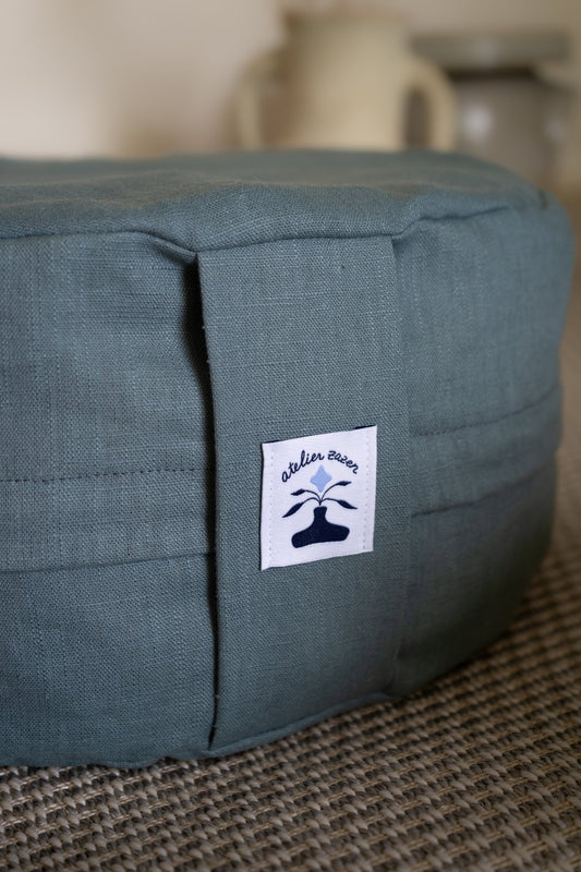 Coussin de méditation en lin et coton • bleu gris – Fait main en France
