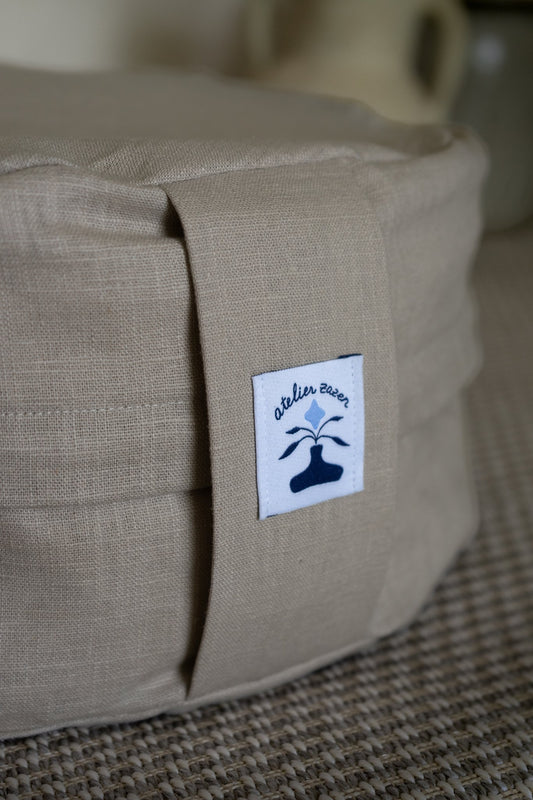 Coussin de méditation en lin et coton • sable – Fait main en France